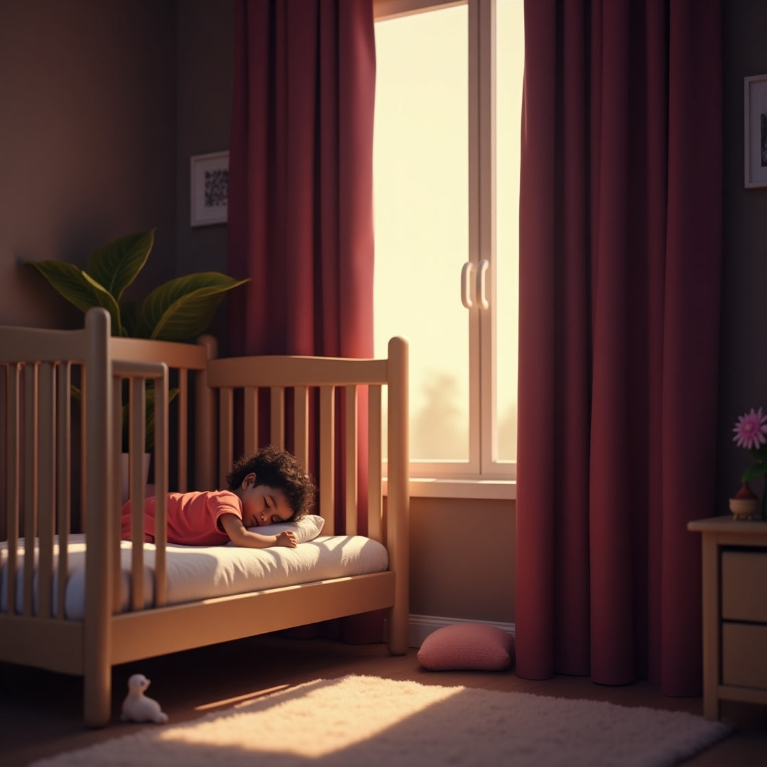 Thick, light-blocking curtains designed to create a restful, dark environment for Indian toddlers to nap during the day.