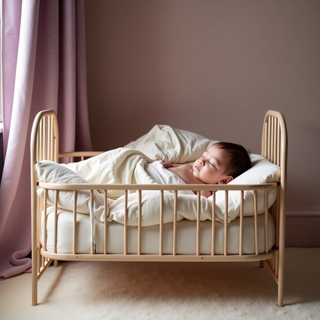 A traditional yet modern cradle with gentle rocking motion, designed to help newborns fall asleep naturally.